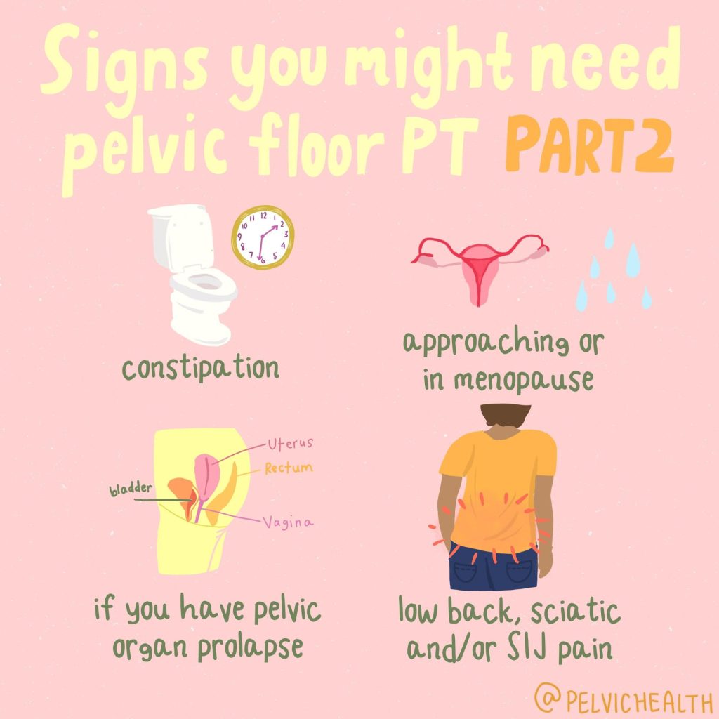 When the pelvic floor isn’t functioning well — whether too tight (hypertonic), too weak (hypotonic), or unable to coordinate properly — symptoms may emerge: urinary or fecal leakage, pelvic pain, sexual dysfunction, pressure or bulge sensations, and even back or hip pain.